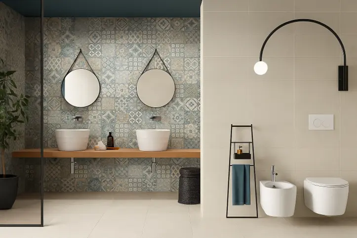 - کاربری فضا: نوع فضا (آشپزخانه، حمام، اتاق نشیمن یا دفاتر کار) در انتخاب سرامیک طرح بتن مؤثر است. در فضاهای پر رفتوآمد (راهروها، لابیها) سرامیکهای ضخیم و مقاوم با درجه سختی بالا توصیه میشوند. در حمام و دستشویی، سرامیک مات ضدلغزش اولویت دارد. برای دیوارپوشها میتوانید از طرحهای متفاوت با ضخامت کمتر استفاده کنید تا نصب و برش آسانتر شود.