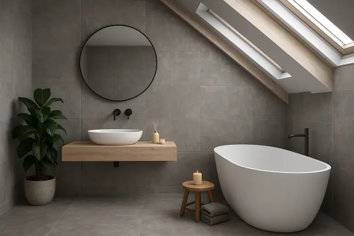 - هماهنگی رنگ و طرح: رنگ خاکستری خنثی سرامیک بتن قابلیت انطباق بالایی با دیگر المانها دارد. بهعلاوه، با انتخاب دوغاب مناسب میتوانید جلوه کلی را کم یا زیاد کنید؛ رنگ روشن دوغاب فضایی یکپارچهتر میسازد و رنگ تیرهتر کنتراست بیشتری ایجاد میکند.